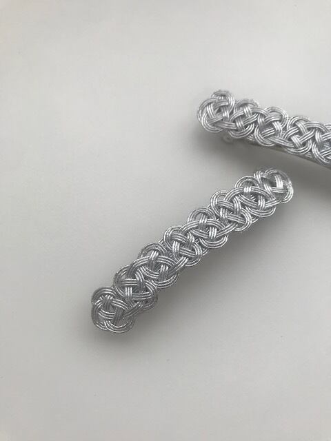 シルバーの水引のシンプルなあわじ結びのバレッタです。